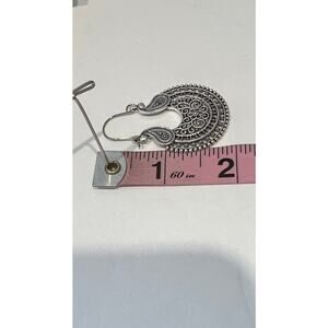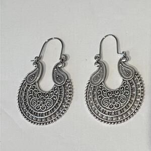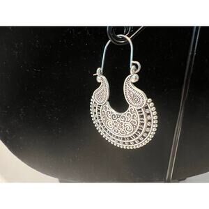 NEW Artisan Handmade Silver Tone Hoop Pierced Earrings Oxidized Paisley Motif