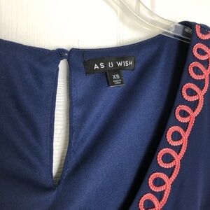 NEW As U Wish Navy Embroidered Mini Dress Women Size XS