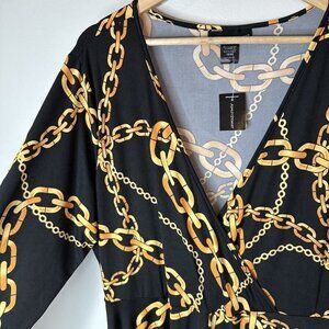 NEW Ashley Stewart Womens Black Gold Long Sleeve Chain Maxi Dress w/Slit 18/20