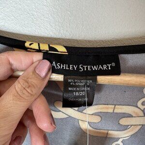 NEW Ashley Stewart Womens Black Gold Long Sleeve Chain Maxi Dress w/Slit 18/20