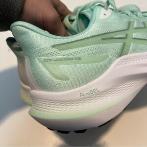 The product is a pair of ASICS Gel GT 2000 8.5 Women's Running Shoes in size D wide. These athletic sneakers are part of ASICS' GEL product line and feature a stylish mint tint/dark mint color scheme. With multiple US shoe size options available, these shoes provide comfort and support for women who enjoy running or other athletic activities. Perfect for those looking for a high-quality and fashionable footwear option.