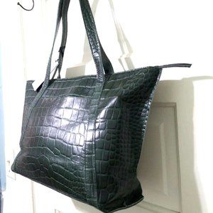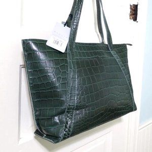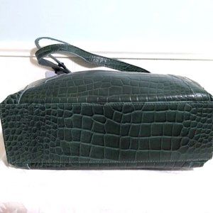 NEW Assots London AGNES Forest Green Croc 100% Leather Satchel Handbag Purse Zip