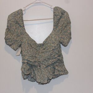 NEW Astr Multicolor Floral Short Sleeve Square Neck Blouse Women's Size L