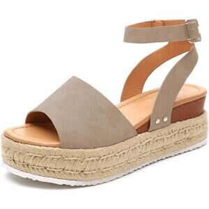 NEW Athlefit Khaki Brown Platform Espadrille Wedge Sandal Women's 10.5 Size 41