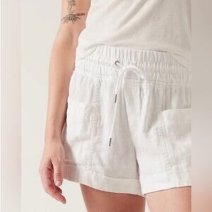 NEW Athleta Cabo Linen Pull On Drawstring Shorts Sz 14 White