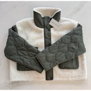 NEW! Athleta Olive Green & White Fleece Hybrid Jacket Women's Crop XL Snap Front