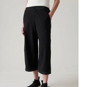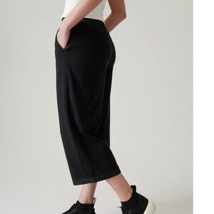 NEW Athleta Women’s Triumph Hybrid Wide Leg Crop Black Pant Size Medium Petite. Inseam = 20”. Waist = 29 1/4 - 30 1/4. Hips = 39-40. Original price = $109. Brand new with tags. No flaws. See pictures for more details.