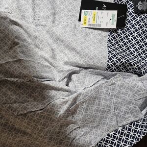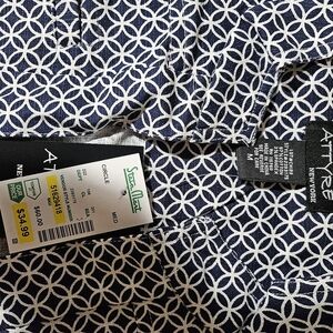 New with tags from Stein Mart, Attyre New York women's geometric damask lightweight denim jacket with long sleeves and silver gem hardware. Elevate your wardrobe with this stylish geometric patterned top. Perfect for any occasion, this top features a classic black and white design that pairs effortlessly with any outfit. Size Med, chest measures about 19.5".