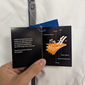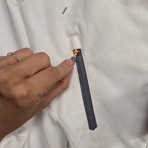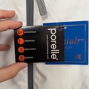 New with tags white Auclair Women's Ski jacket with porelle fabric system. Fully lined, inner and outer pockets. Velcro wrist adjustment and elastic hip adjustment. Hoodless style. Breathable mesh inside. Size medium (in ski gear, this is typically size 6-8).