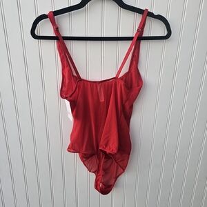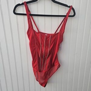 NEW Auden Rhinestone Red Bodysuit Adjustable Straps Women's LARGE