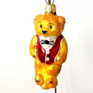 NEW Authentic Christopher Radko TEDDY BEAR Gold Tiny Tedy HandMade Glass Ornamet