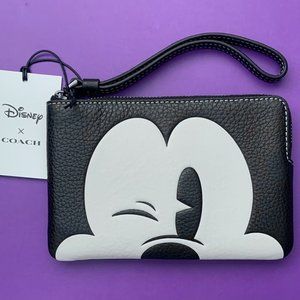 NEW Authentic Disney X Coach Corner Zip Wristlet With Wink Mickey Mouse black