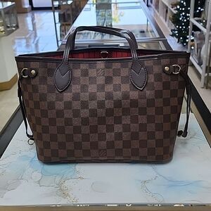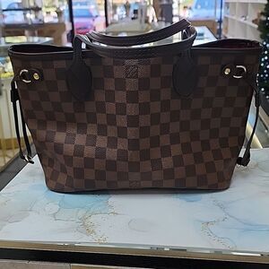 NEW Authentic Louis Vuitton Damier Ebene Neverfull PM Purse Bag Tote & Pouch
