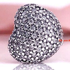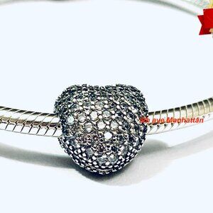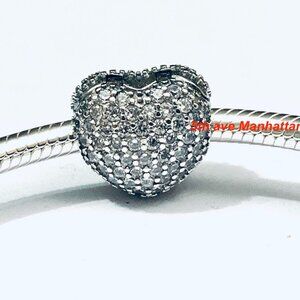 NEW Authentic Pandora Silver Pave Heart Clip / Pandora bracelet /Pandora Charms