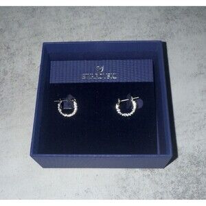 NEW Authentic SWAROVSKI DEXTERA Hoop Pave Small White Rhodium Earrings #5446004