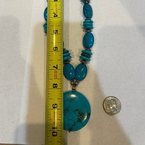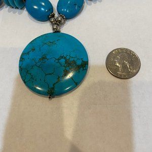 NEW! Authentic ONE OF A KIND Turquoise and Sterling Silver Necklace! I purchased this on a special trip to the Merchandise Mart. This is crafted with real natural turquoise with sterling silver spacers and findings. I love statement pieces, as you can tell from my closet! This one is outstanding! It's very substantial and not for the faint of heart. I have kept this in my jewelry armoire and admired it. Every once in a while, I don it while whirling around my bedroom! I'm trying to clear out my armoire and considering letting this beauty go. It was a one of a kind piece and very expensive since it's hard to come by real turquoise in this size. Comes from a smoke free home.
