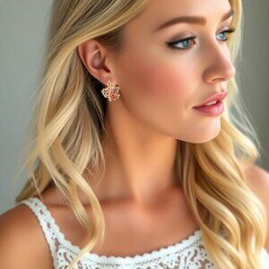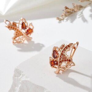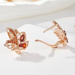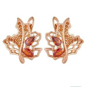 NEW Autumn Leaf Huggie Earrings Amber Crystals 14K Gold Plated Boho Classic Fall