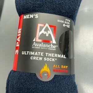 NEW Avalanche Men's Siz 6-12 Ultimate Thermal Crew Sock 3 Pair Pack Navy & Gray