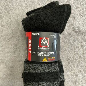 NEW Avalanche Men's Size 6-12 Ultimate Thermal Crew Socks 3 Pair Pack
