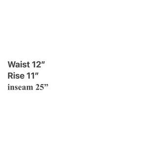 Waist = 12 inches, Rise = 11 inches, Inseam = 25 inches