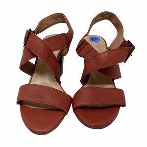 Avellini Womens Slingback Sandals Brock red Brown Cross Stap Block Heels Italy 6.5 New