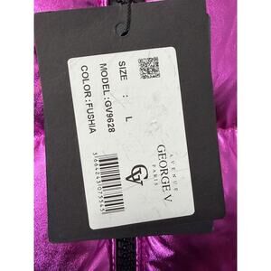 NEW Avenue George V Paris Puffer Jacket Hooded Fur Rhinestone Pink LARGE $650