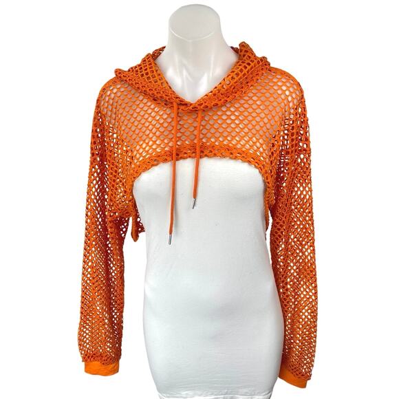 NEW Avidlove Women's Orange Mesh Fishnet Long Sleeve Hooded Hoodie Crop Top XL