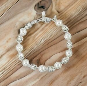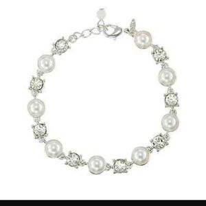 Avon Pearly Sparkly Bracelet. This is brand new in box. Alternating faux pearl and CZ stones around a silvertone bracelet. This is stunning on. Perfect for dressy attire or those special night outs.