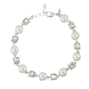 With silvertone plating and CZ accents, the pearl becomes elegantly modern on this pretty bracelet.