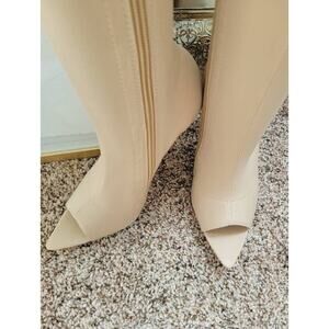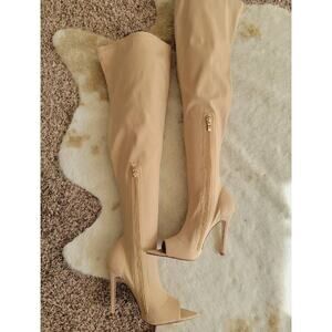 NEW Azelea Wang women's tan open pull up style open toe thigh-high boots sz 6.5