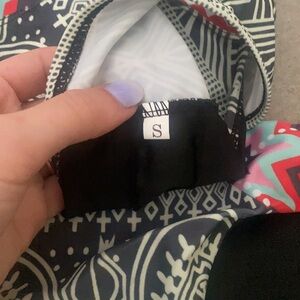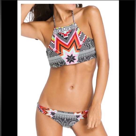 Beautiful Aztec high-neck bikini. Tags are size small, but could definitely fit a medium better. The inner lining is completely black, no stains rips or tears. It’s never been worn! Great condition.