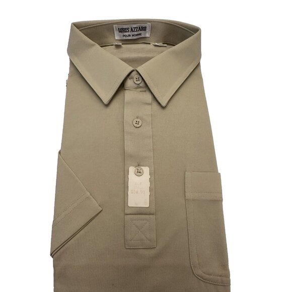 NEW Azzaro Button Down Formal Dress Shirt Pocket Tan Beige Mens Sz L $120 Retail
