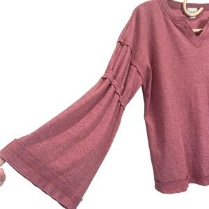 NEW BAEA Los Angeles Pink Waffle Knit Splitneck Pullover with Wide Sleeve NEW