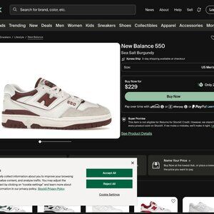 NEW BALANCE 550 LEATHER & SUEDE SNEAKERS Sea Salt Burgundy in Men's 6 / fits Women 7.5
