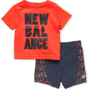 New with tags! New Balance Baby Girl Set. Tee: 75% Polyester 25% Cotton tee, Shorts: 95% Cotton 5% Spandex.
