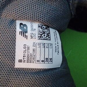 NEW BALANCE WOMENS SHOES, SIZE 8, ON THE SMALL SIDE OF 8, WERE TO SMALL FOR ME. GRAY BLUE, WHITE AND BLUE SOLES.