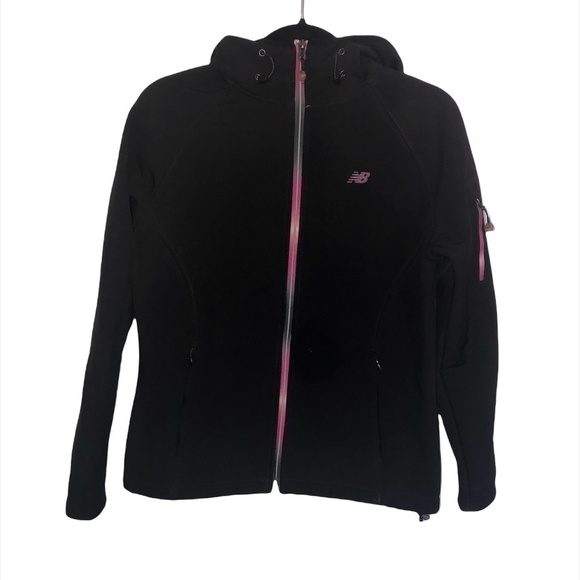 NEW BALANCE Women's Soft Shell Fleece Jacket Hood Size Small Black Pink Ombre