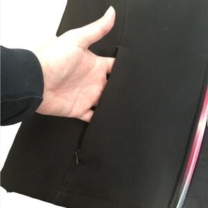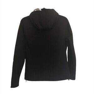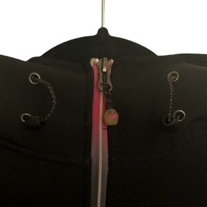 ♡Women's Size Small. Black, Pink, Gray. Hoodie adjustable bungee cord, Arm zipper pocket, Ombre front zipper closure, Two side pockets with zipper closure, Two inside pockets, Fleece inside, soft shell. There is a small white stain near the front zipper closure.