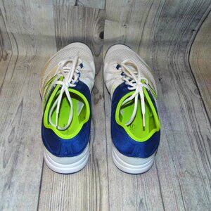 PRE-OWNED New Balance Minimus 20 v5 white/blue/green sneakers, mens size 12.5 2E.