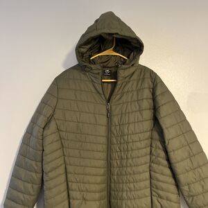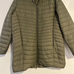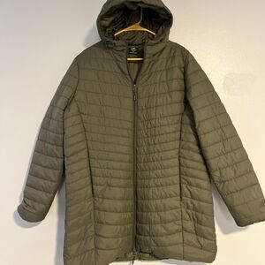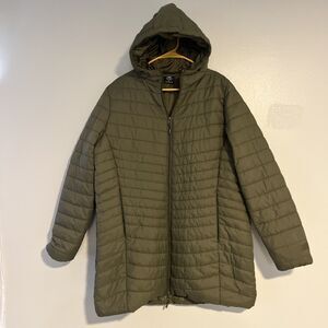 NEW BALANCE Women's Quilted Long Puffer Parka Jacket Full Zipper Dark Green XL