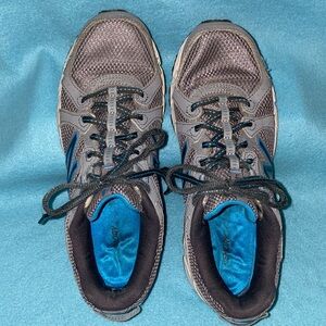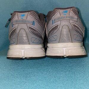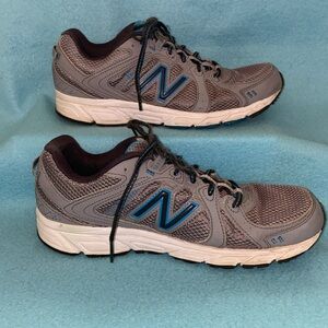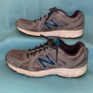 NEW BALANCE leather mesh memory foam lace up gray blue sneakers size 9.5 EUC