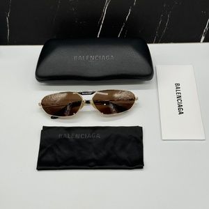 NEW BALENCIAGA BB0245S 003 UNISEX SUNGLASSES BB 0245S GOLD METAL OVAL EYEWEAR