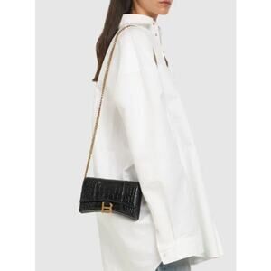 NEW BALENCIAGA HOURGLASS BLACK CROC LEATHER CHAIN WALLET BAG PURSE AUTHENTIC