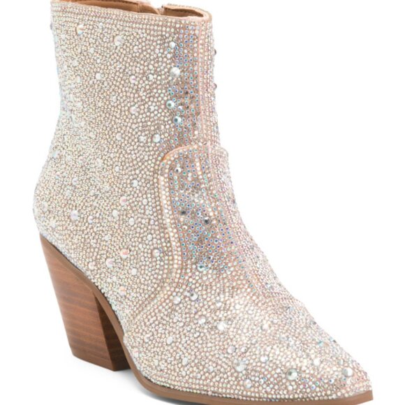 NEW BAND OF THE FREE Rita Crystal Western Booties Natural 462mn