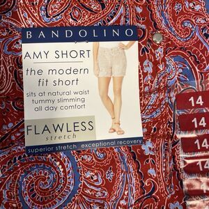 NEW! BANDOLINO Womens 14 Amy Short Bonfire Paisley Flawless Stretch Red Blue