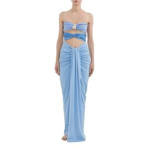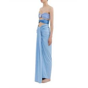 Discover the Gisele Maxi Dress by BAOBAB in a stunning Reef hue, epitomizing quiet luxury for the modern woman. This strapless piece, crafted from a textured 80% Nylon/20% Elastane blend, features a sweetheart neckline and an innovative design that can be worn as a complete ensemble or separate items. The sheath silhouette is elevated with elegant front knot and cascade details, complemented by a flattering front slit and an elastic waistband for comfort. Seamlessly combining style and versatility, this maxi dress is a perfect choice for cocktail parties. Closure: Pull on. Care: Hand wash.
