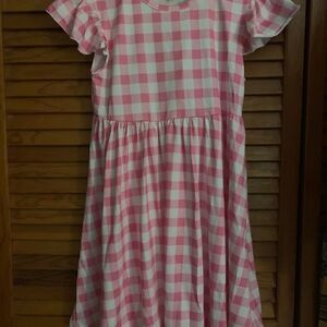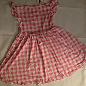 NEW in package! Super cute Barbie Pink Plaid Dress with Matching Hair Bow. This cute A line dress has flutter sleeves and a round neckline. Perfect if she is dressing as BARBIE for Halloween or for any occasion! This is a girls size 7/8.