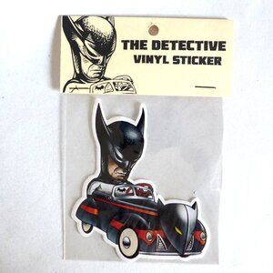 New, never removed from its package, Chet Phillips illustration, vinyl decal sticker. Features “Batman” riding a child’s “Batmobile” pedal car. (See photos for details) I am the original owner. It has been in climate controlled storage since purchased at Comic Con. Comes from a pet and smoke free home.