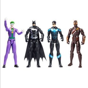 Create your own epic Super Hero and Super Villain adventures with the Batman Gotham City Guardians set of 12 inch action figures! This set of 4 includes Metal–Tech Batman, The Joker, Talon and Nightwing! Each action features 11 point of articulation, a cloth cape (on Batman)and detailed comic styling that brings your favorite Batman characters to life! Team up with the dynamic duo of Batman and Nightwing and help rid Gotham city of its most sinister Super-Villains like The Joker and Talon engage your imagination and pose your action figures as you play out your own Batman storyline and battles! The Gotham city guardian set has everything you need to create your own Gotham city adventures right out of the box! With a range of 12 inch figures to collect expand your Batman action figure collection for even more ways to play! Bring home your favorite characters with the Batman Gotham City Guardians set!