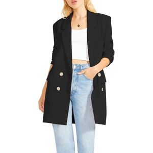 This longline blazer, designed with a double-breasted button closure and notched lapels, offers total boss style instantly. Style Name: Bb Dakota By Steve Madden Dressed To Thrill Blazer.